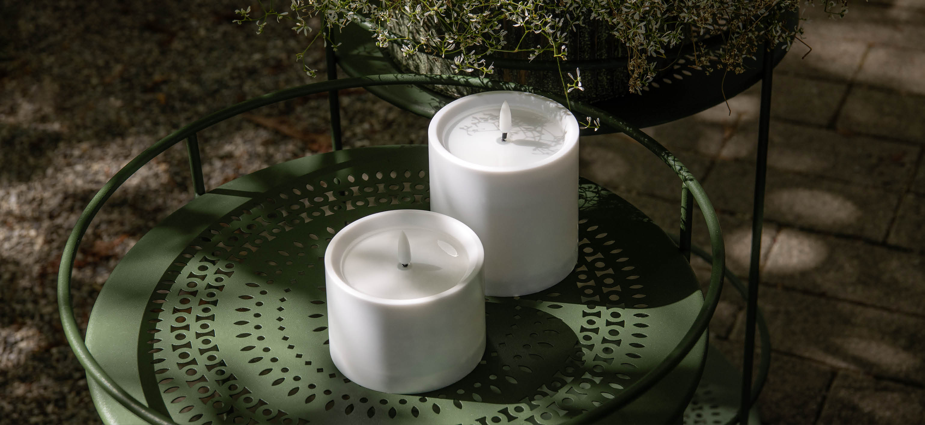 Wenn der Tag zur Ruhe kommt, beginnt das Spiel des Lichts. Der Wind lässt die Lichterketten tanzen, die Laternen zaubern verspielte Schatten auf die Szenerie, sanfter Kerzenschein hier und dort. Der Garten verwandelt sich in eine Bühne für unvergessliche Sommerabende.